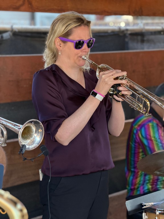 Adam is a founding member of Sinister Dexter and is glad to be playing with them again after a brief 14-year hiatus. Starting as a trombone player in bands and orchestras in 9th grade, Adam picked up trumpet after college and decided to stick with it when SinDex began, both because the band already had two great trombone players and because it's way easier to carry a trumpet around. In the rare moments when he's not busy helping raise a kid or designing voice experiences for a large tech company, he likes to arrange and occasionally compose original music.